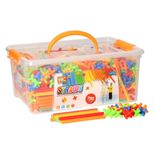 De set bevat in totaal 700 bouwstaafjes en verbindingsstukjes in vrolijke kleuren. Na het spelen berg je de verschillende onderdelen gemakkelijk weer op in de handige opbergbox.