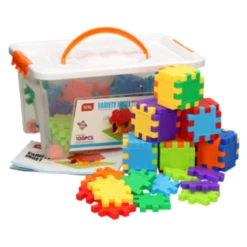 Met de Bouwvormen Vierkant kun je eindeloos figuren bouwen. Een huis, een hond, een toren of een vliegtuig, steek de 100 stevige kunststoffen kleurrijke vierkante bouwvormen in elkaar en bouwen maar. Stimuleer de hand-oog coördinatie en leer verschillende kleuren met deze bouwset.
