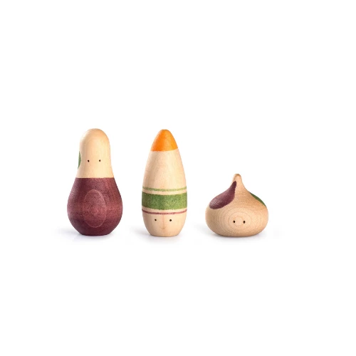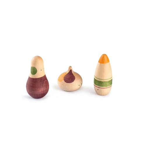 3 schattige houten speelfiguren van het merk Grapat waar je uren lang mee kan spelen. De poppetjes zijn geïnspireerd door abstracte artistieke bewegingen.