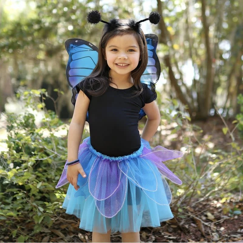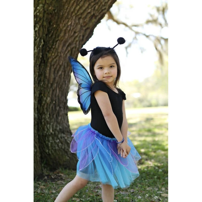 Tover jouw kindje om in een prachtige blauw nachtvlinder van het merk Great Pretenders. Inclusief vleugels, rok en diadeem. US maat 4-6, Nederlandse maat +/- 110-122.