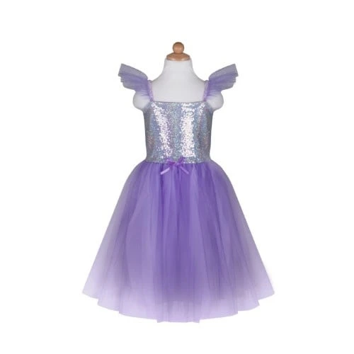 Een hele mooie paars/lila prinsessen jurk met een glitter lijfje en een mooie rok van het merk Great Pretenders. Geschikt voor kinderen van 5 & 6 jaar.