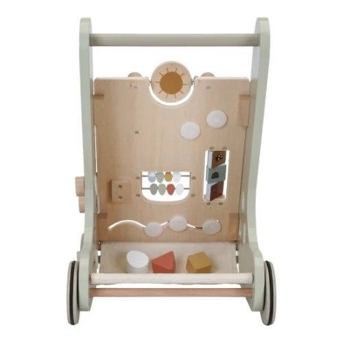 Loop, speel en leer! Deze houten activiteiten loopwagen biedt verschillende uitdagende activiteiten die de ontwikkeling van jouw kindjes motoriek ondersteunen.
