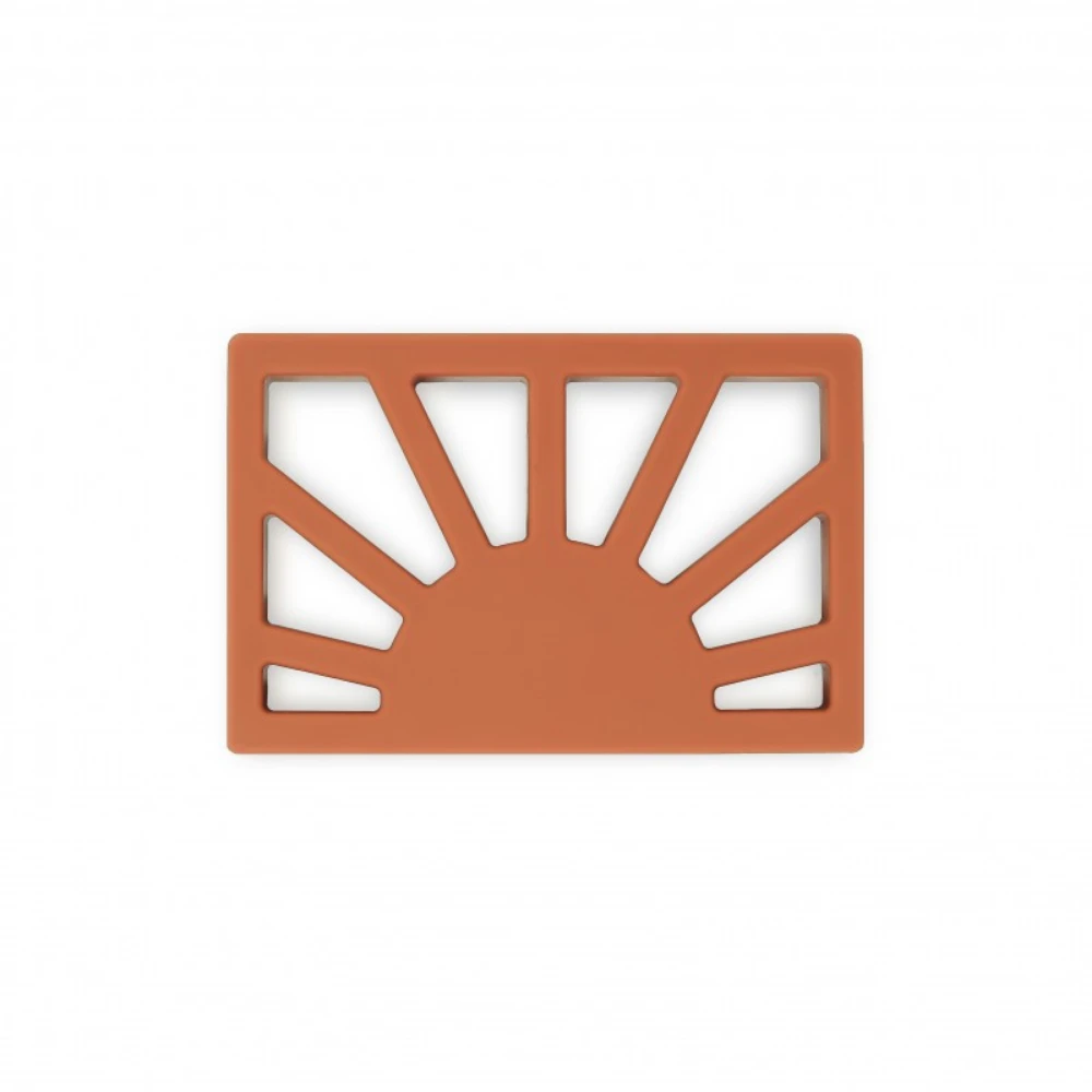 Een zonnige siliconen bijtfiguur voor jonge kinderen van het merk Mushie. Deze ‘Teether Sun’ is babyspeelgoed ontworpen om makkelijk vast te grijpen en te verzachten bij het doorkomen van tandjes.