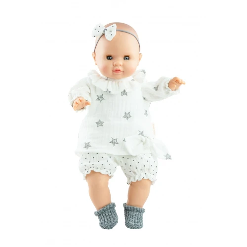 Poppen – Pop Manus Lola ster (36cm) is een heerlijke pop om mee te spelen van het merk Paola Reina. De pop Manus Lola heeft een blanke huid en blauwe ogen. Ze heeft een zacht lijfje, ruikt heerlijk naar vanille en wordt geleverd met een superschattig kledingsetje incl. haarband en sokken.