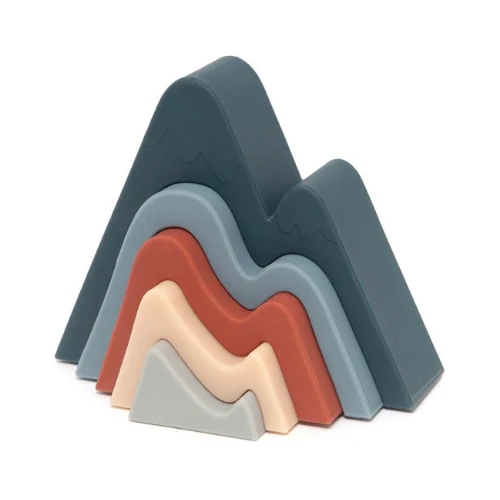 Speelgoed – Stapelaar berg (Stacker toy mountain balsam blue) is een siliconen stapelaar in de vorm van bergen. Deze stacker bestaat uit 5 bergen in verschillende kleuren.