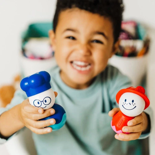Maak een kok, een bouwer, een tuinier, brandweerlid… of mix en match grappige gezichtjes met verschillende hoeden en rompen om de grappigste looks te creëren!