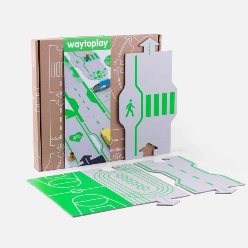 Kartonnen autobaan – Downtown 14-delig is een kartonnen autobaan van het merk Way to Play. Met de set tover je jouw autobaan om tot alledaagse situaties: een zebrapad, parkeervakken etc.